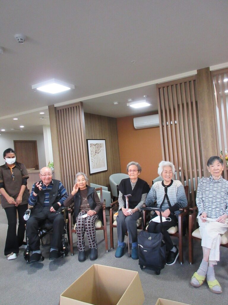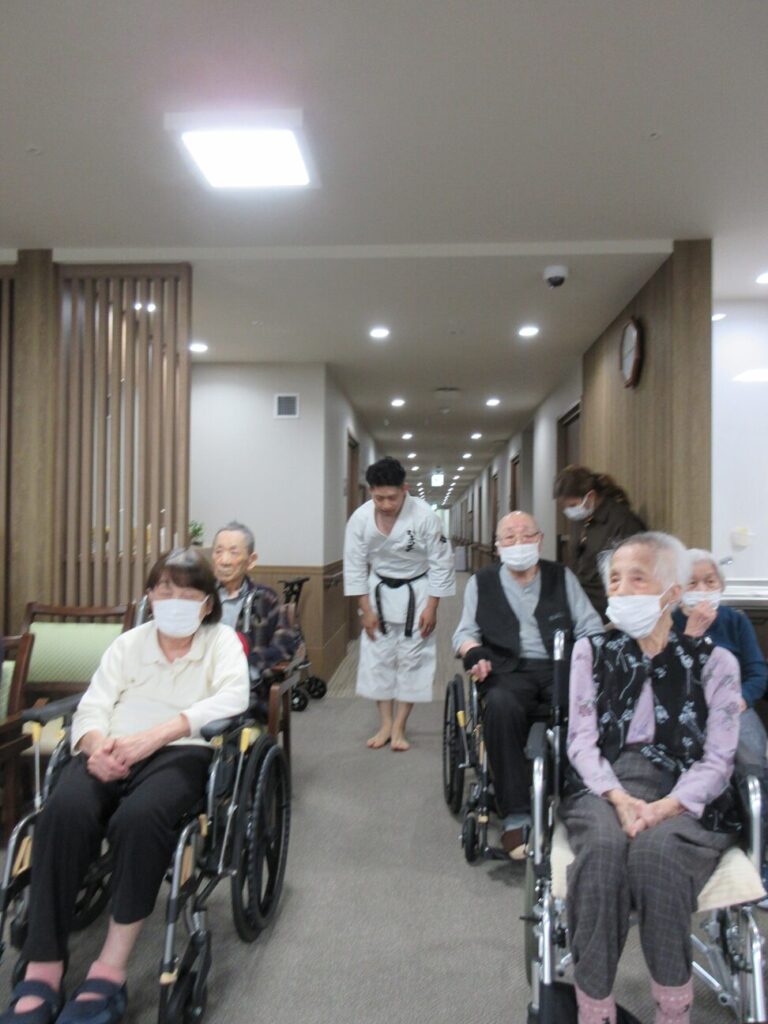 入居者様もスタッフも、いつもとは違う雰囲気に驚きのまなざしでした。