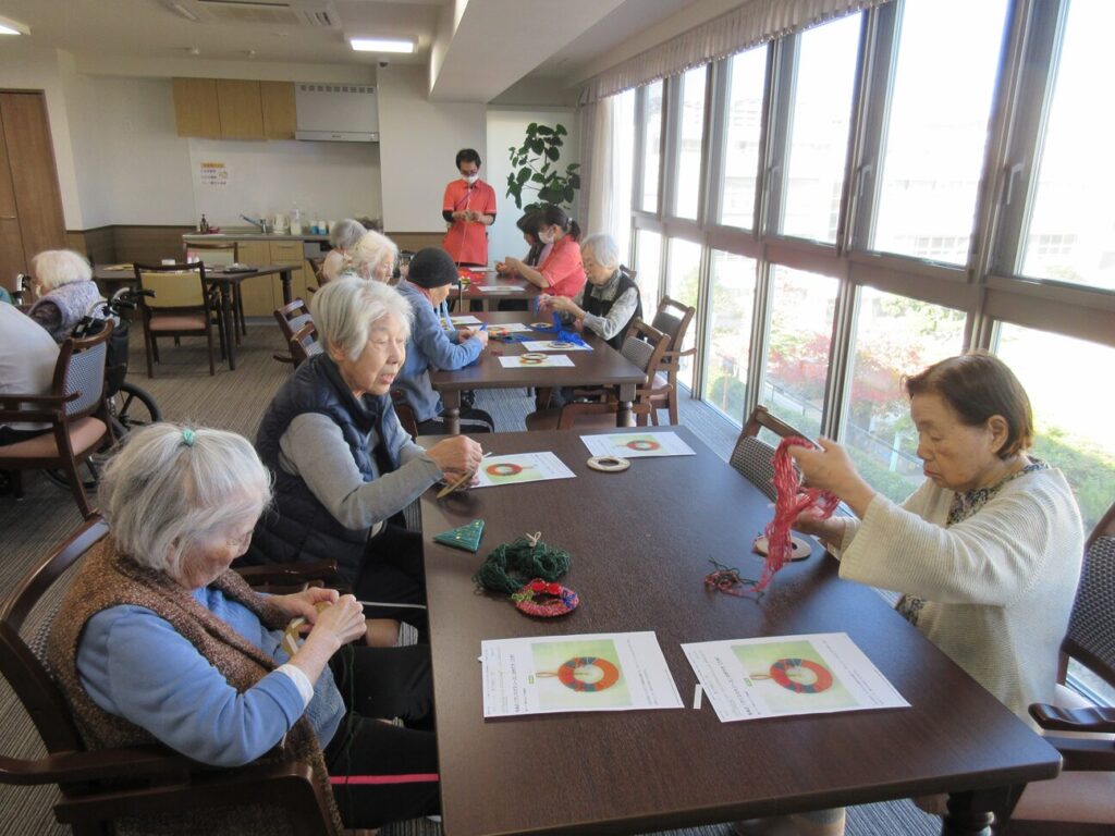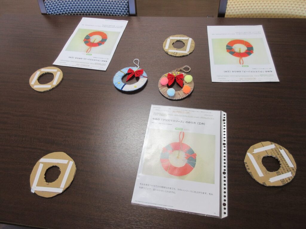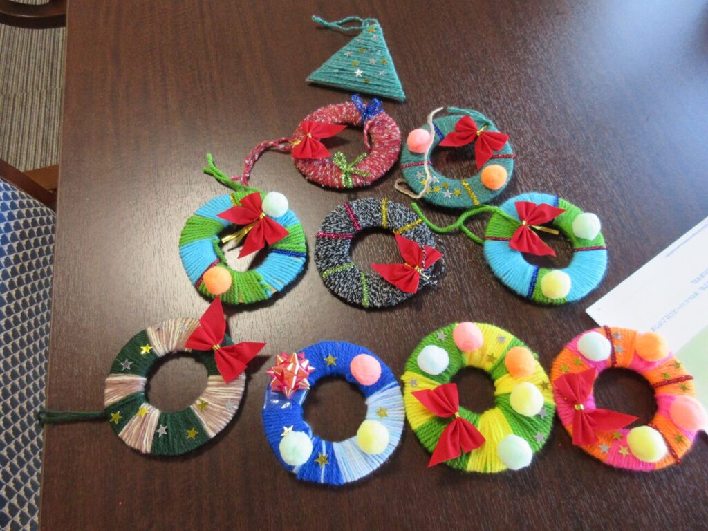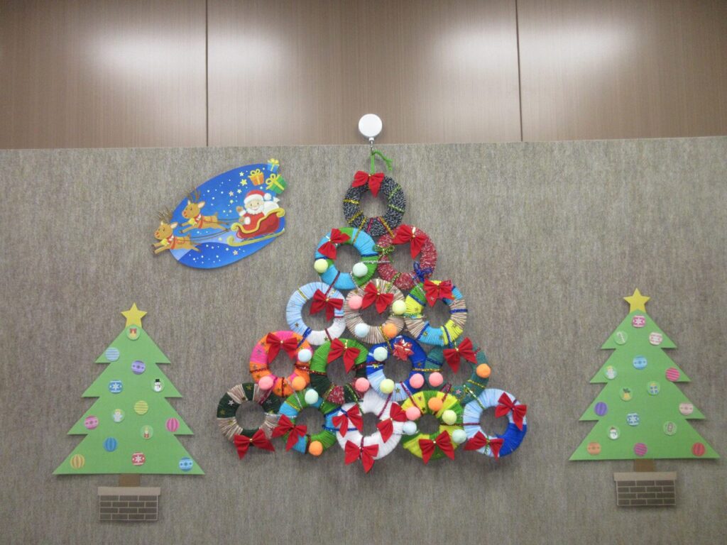 クリスマスにちなんで可愛いリースをみんなで作りました。