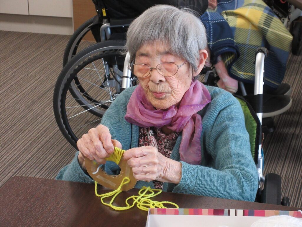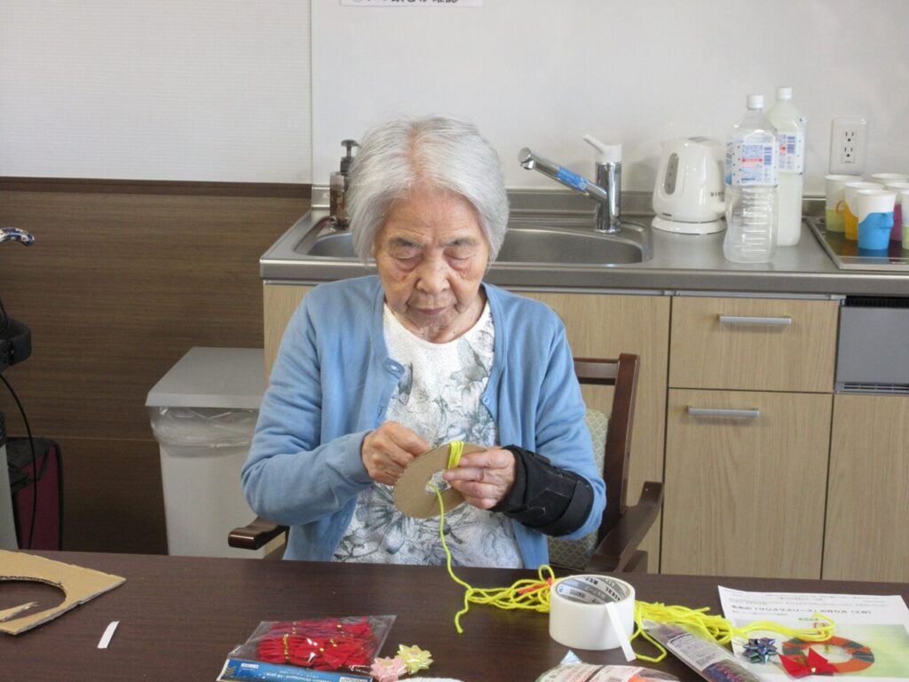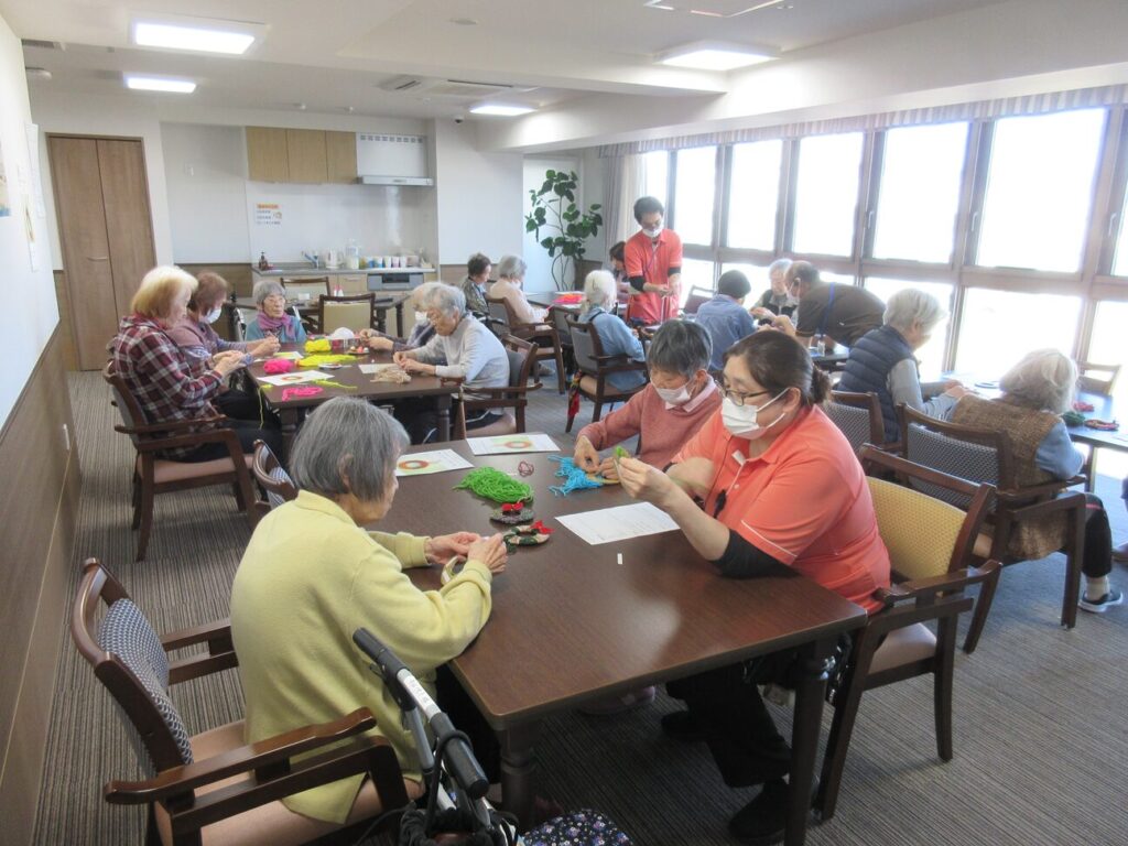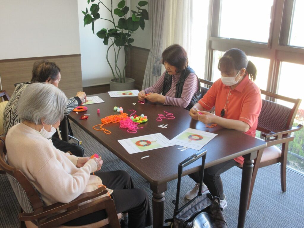 クリスマスにちなんで可愛いリースをみんなで作りました。