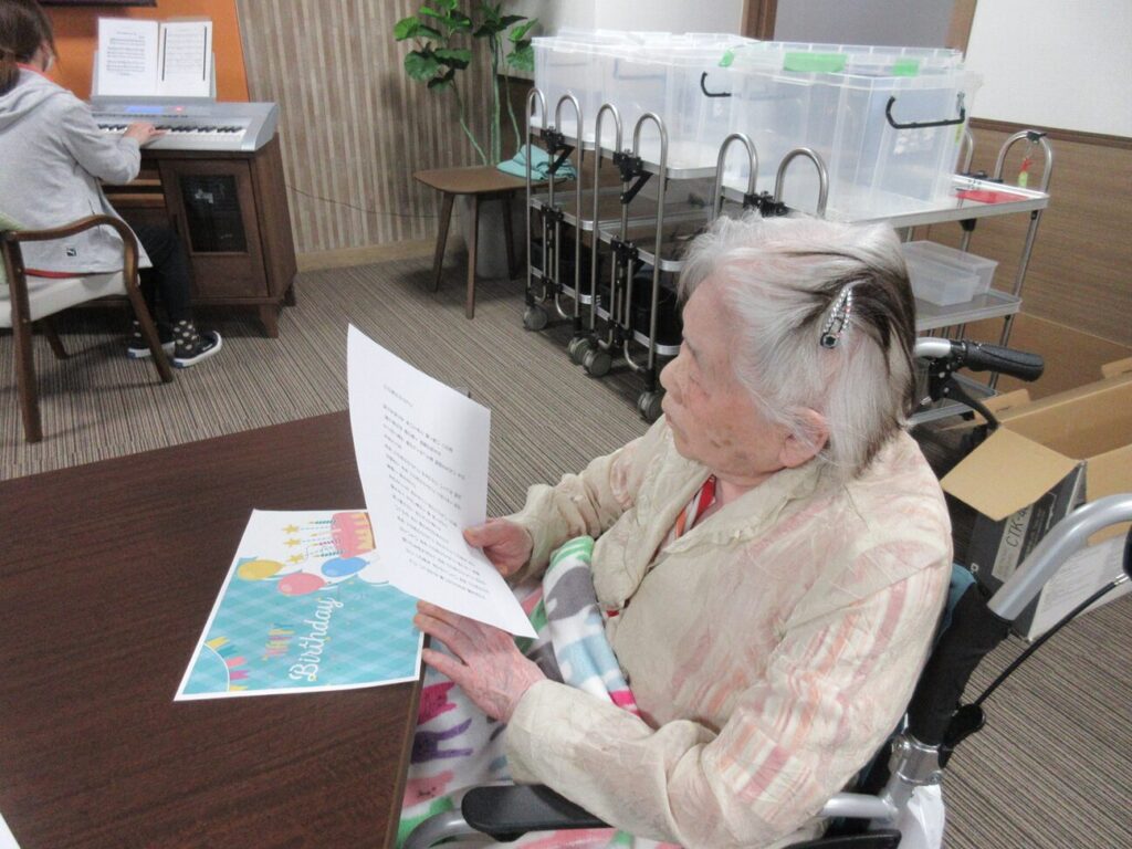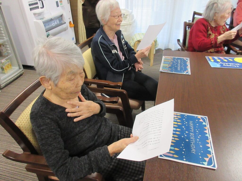 「ハッピーバースデー」と「川の流れのように」の歌を