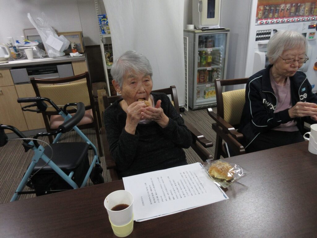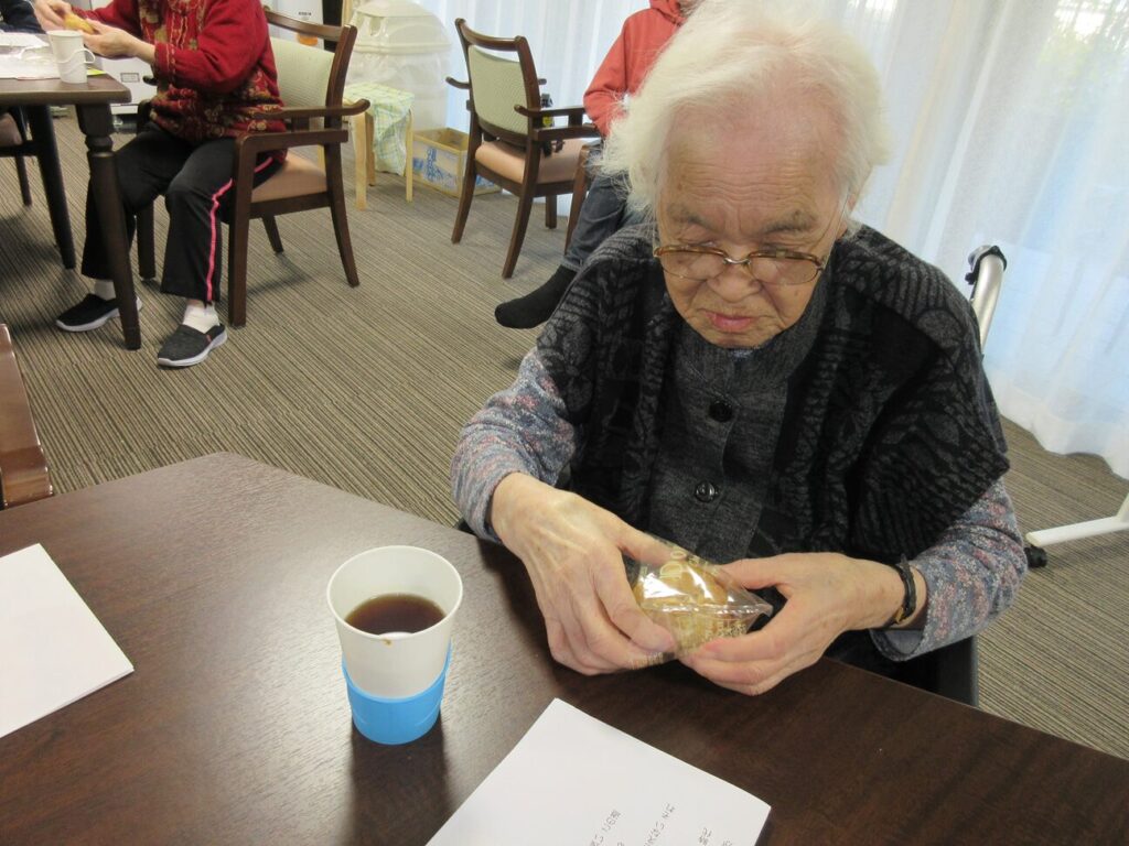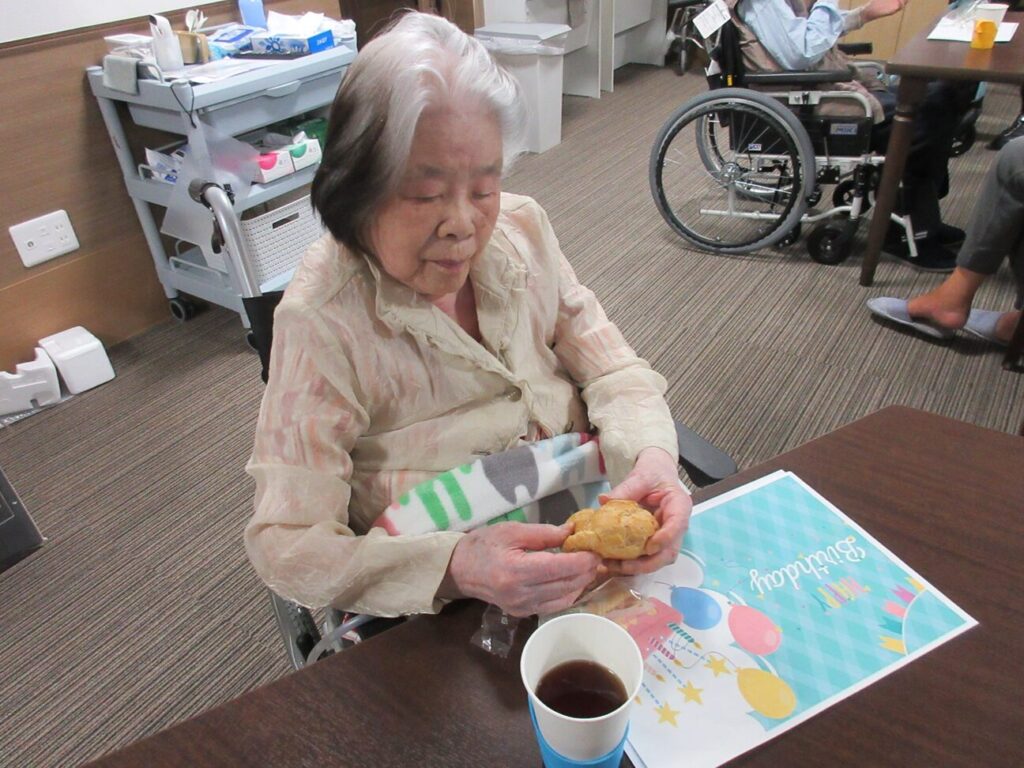 おやつタイムです。シュークリームを召し上がっていただきました。