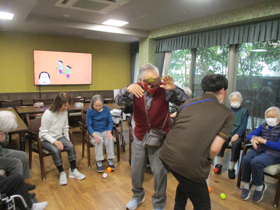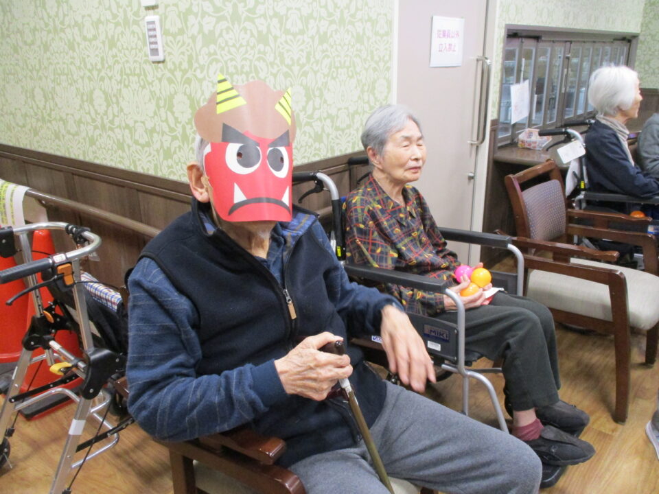 順番に鬼の役をかわり、『鬼は~外!』『福は~内!!』と楽しんでいただきました(⌒∇⌒)